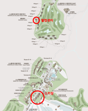 소노펠리체 빌리지는 체크인하는 곳이 다른 곳들과 다른 곳에 존재하는 것을 확인했어요